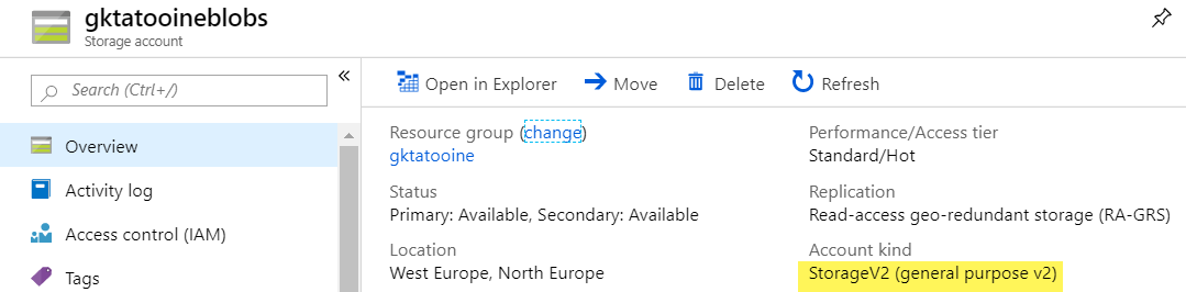 - Make sure your Storage account is a StorageV2 account: