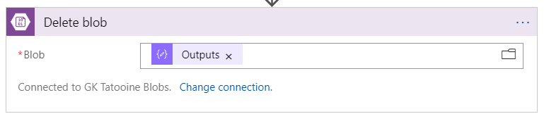 - The Delete blob step just takes the output from the compose step