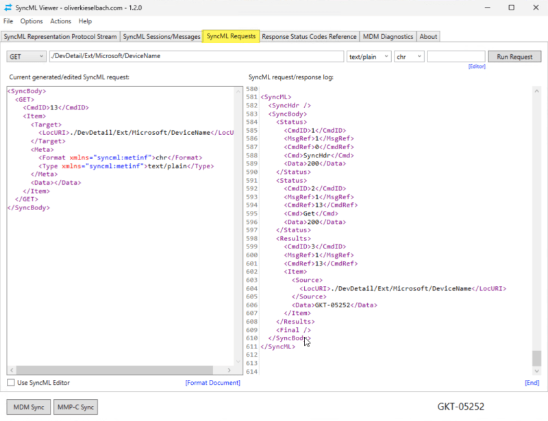 A month ago, I published a new version of the SyncML Viewer to support MMP-C. With this release I came to the idea of integrating some SyncML requests functionality. Sending local SyncML requests to the Windows OS and letting it process the OMA DM commands and get results back. After quite some research how to…